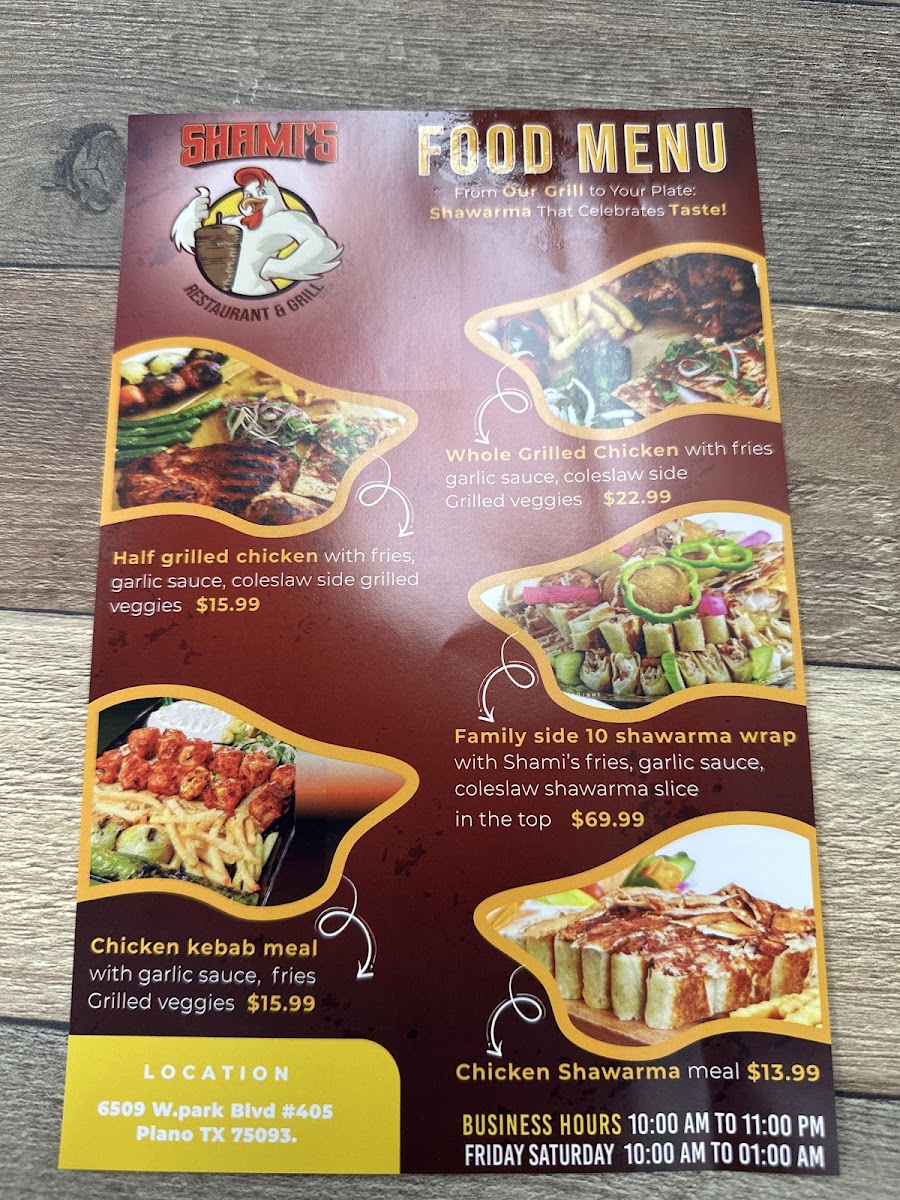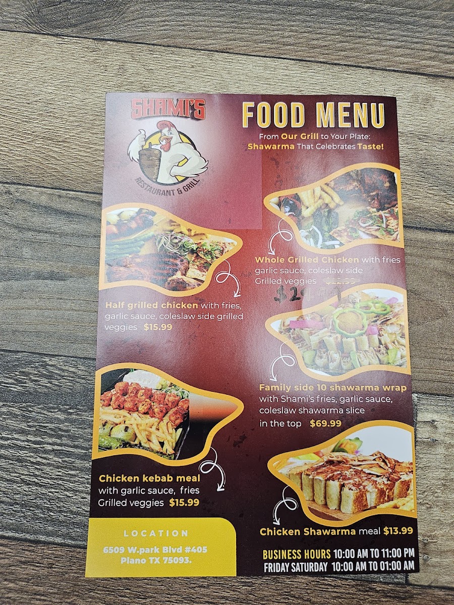 If you're looking to enjoy a meal packed with flavor and rich, authentic tastes, the Shami’s Restaurant & Grill Menu is a must-try. Nestled in the heart of Plano, TX, at 6509 W Park Blvd, this spot offers a variety of delicious dishes that will leave you coming back for more. From sizzling grilled meats to fresh, mouthwatering appetizers, the menu has something to satisfy every craving. Whether you're in the mood for a hearty kebab or a flavorful salad, each dish is carefully prepared with the finest ingredients to ensure a memorable dining experience.